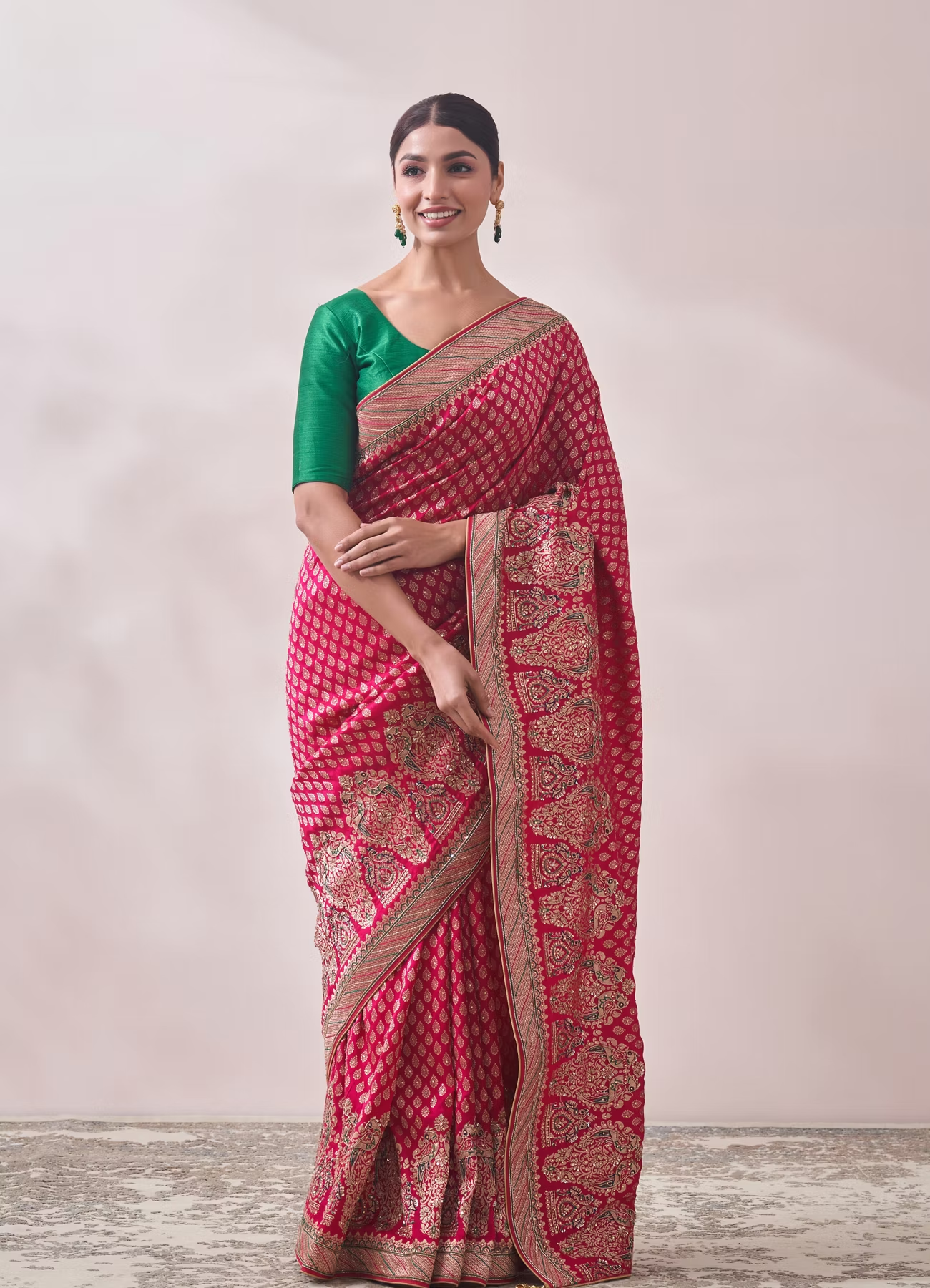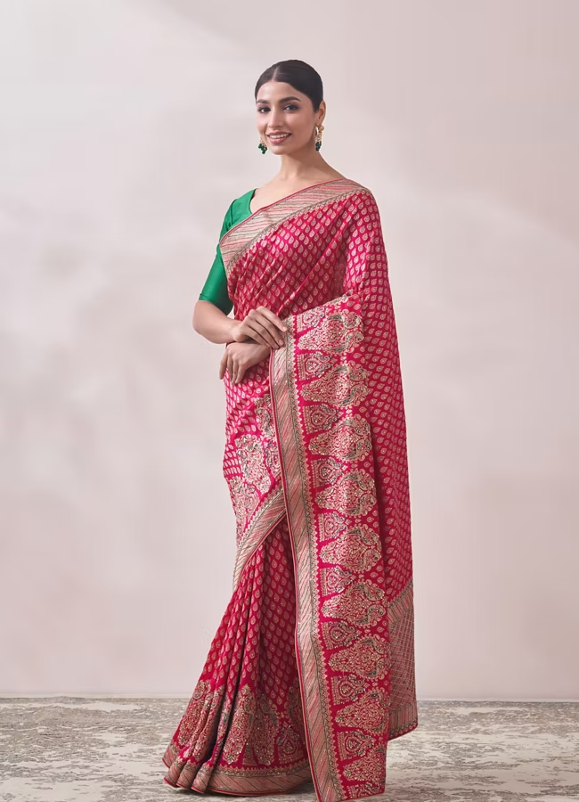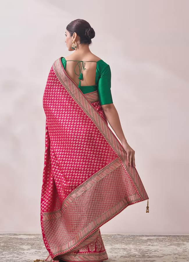 Rani Pink Zari Work Bridal Saree