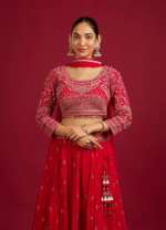 Be the first to review “Rani Red Scallop Zari Embroidered Crop Top Lehenga with Sequin Work” Cancel reply