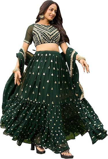 TRENDMALLS Women’s Satin Sequin Embroidery Bridal Lehenga Choli with Net Dupatta |Bridal Wedding Lehenga Choli for women