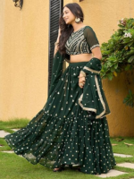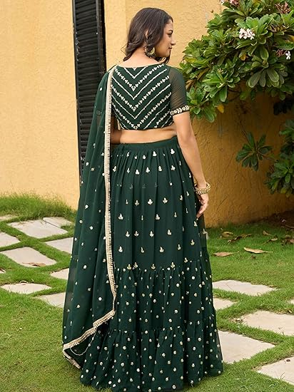 Women’s Art Silk Lehenga Choli with Sequins Embroidery Work & Unstitched Blouse