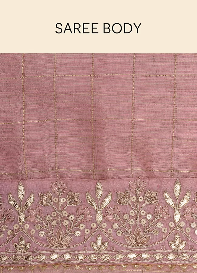 Rose Shadow Pink Saree with Floral Patterned Borders