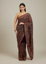 Royal Purple Paisley Patterned Saree with Rhinestone Work