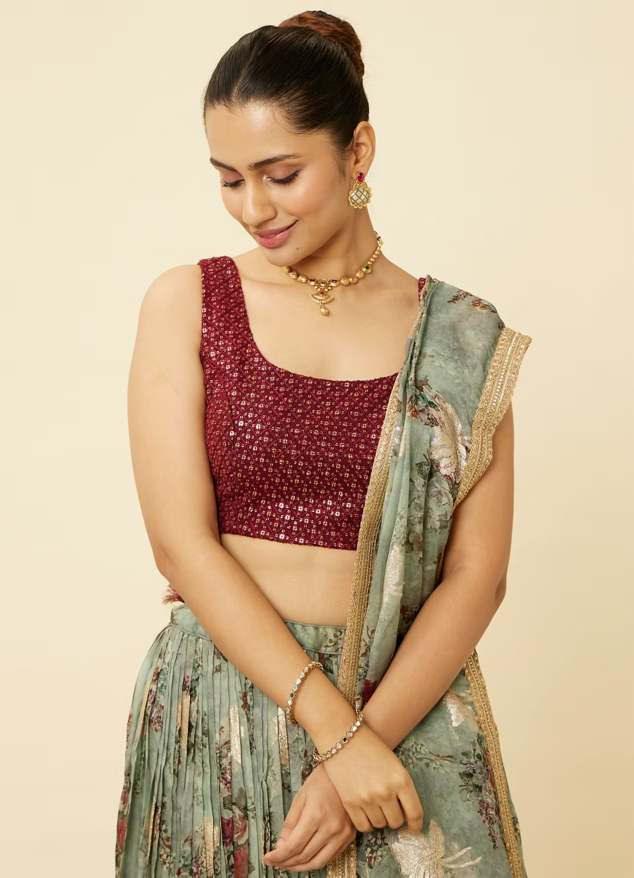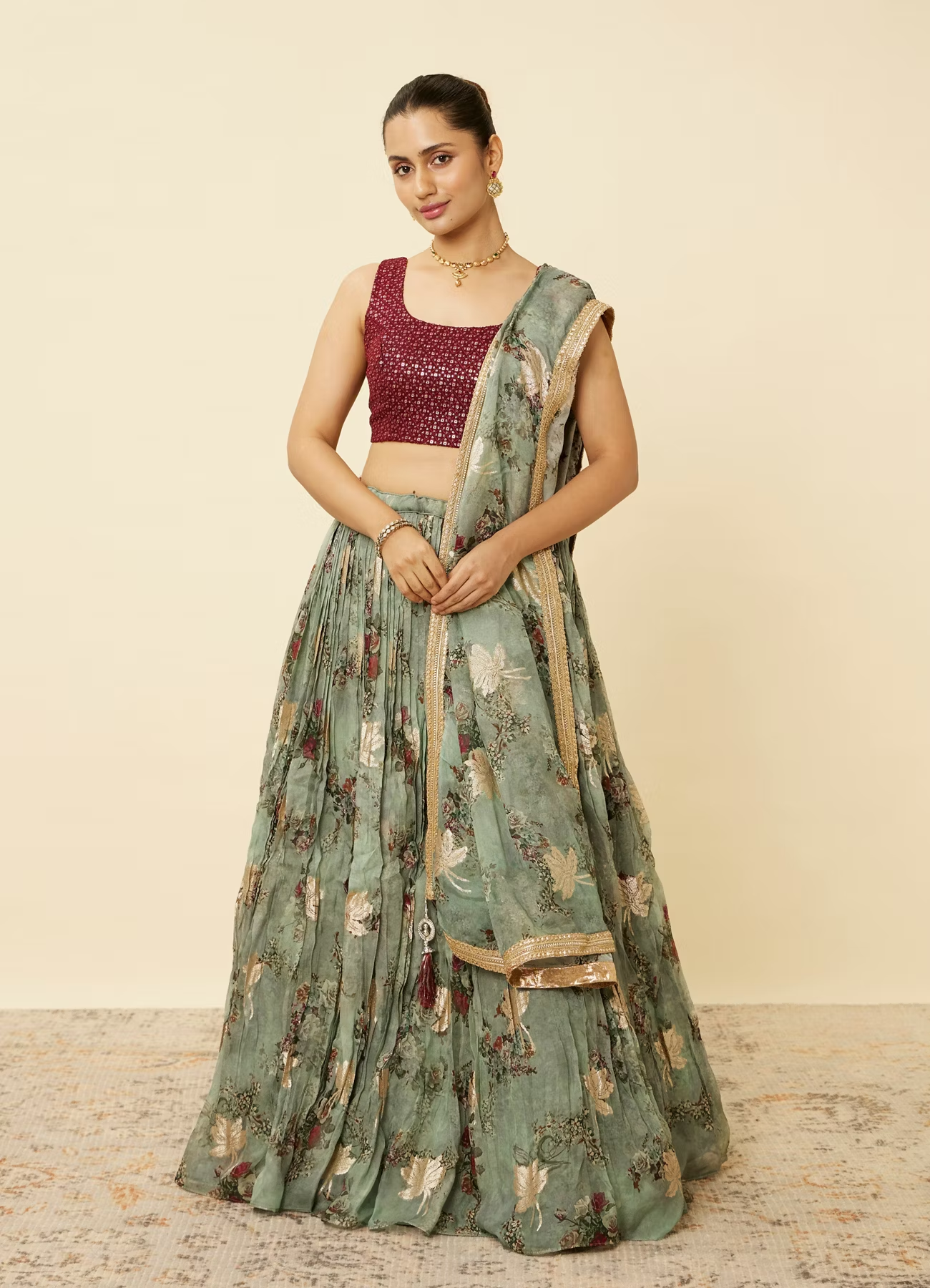 Be the first to review “Sage Green Floral Printed Lehenga” Cancel reply