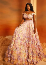 Our Sayeda Lavender 3-D Floral Embroidered Lehenga Set is here to make all your spring wedding dreams come true! Made with a breathtaking embroidered mesh fabric with all-over 3-D flower embroidery, our Sayeda comes with a fitted waistband that flares out into a full, voluminous skirt adorned with cascading 3-D flowers in gorgeous pastel tones to create an uber-flattering silhouette that accentuates your curves. A coordinating blouse features a delicate sweetheart neckline, and off-shoulder sleeves, and is also adorned with the same 3D floral embroidery as the lehenga, creating a cohesive and stunning ensemble. A stunning hand-embroidered dupatta with a scalloped border and matching floral embroidery in pearl, bead, and sequin completes this awe-inspiring look!