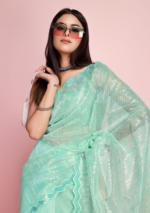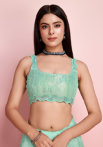Be the first to review “Sea Green Sequin Thread Embroidered Net Saree Set”