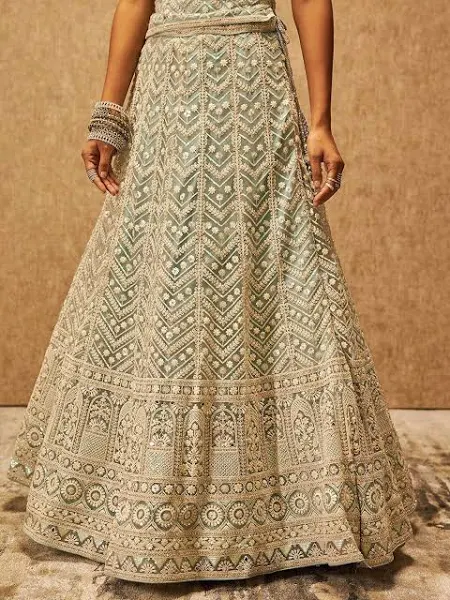 1 Unstitched Lehenga, 1 Unstitched Choli, 1 Dupatta, 1 Belt, 1 Latkan