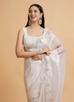 Be the first to review “Soft Cream Plain Saree with Rhinestone Embellished Borders”