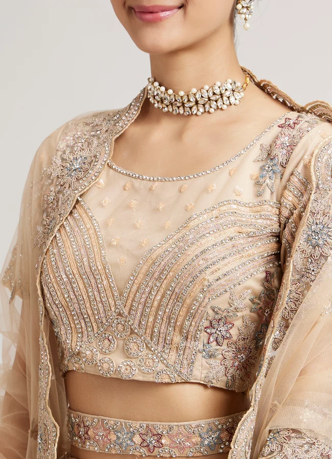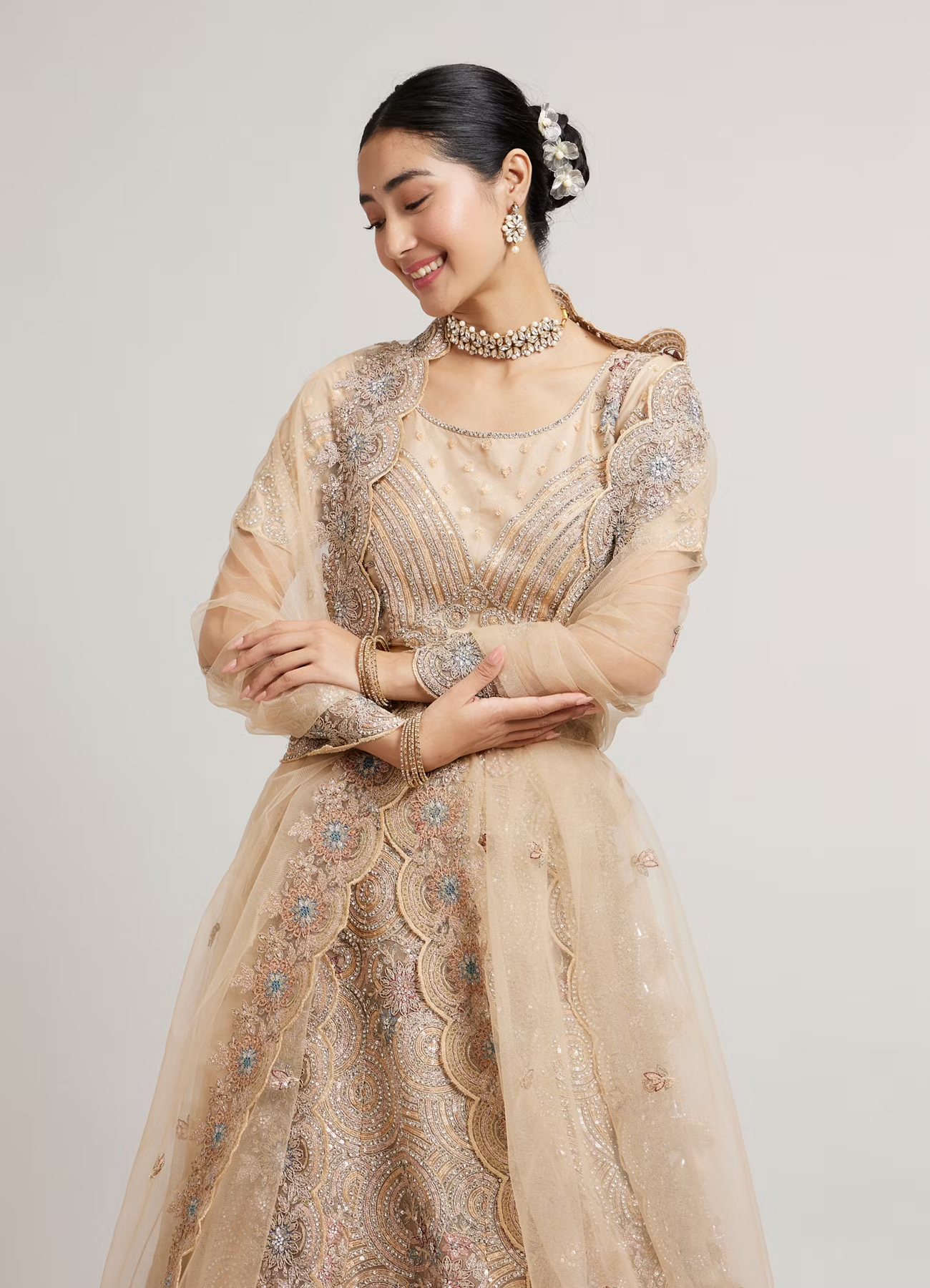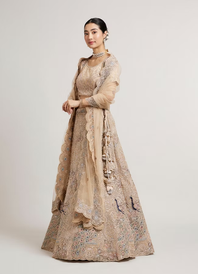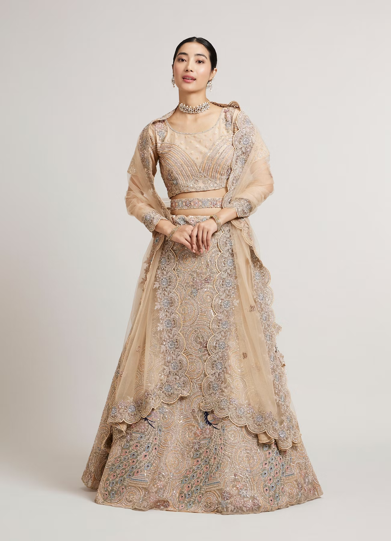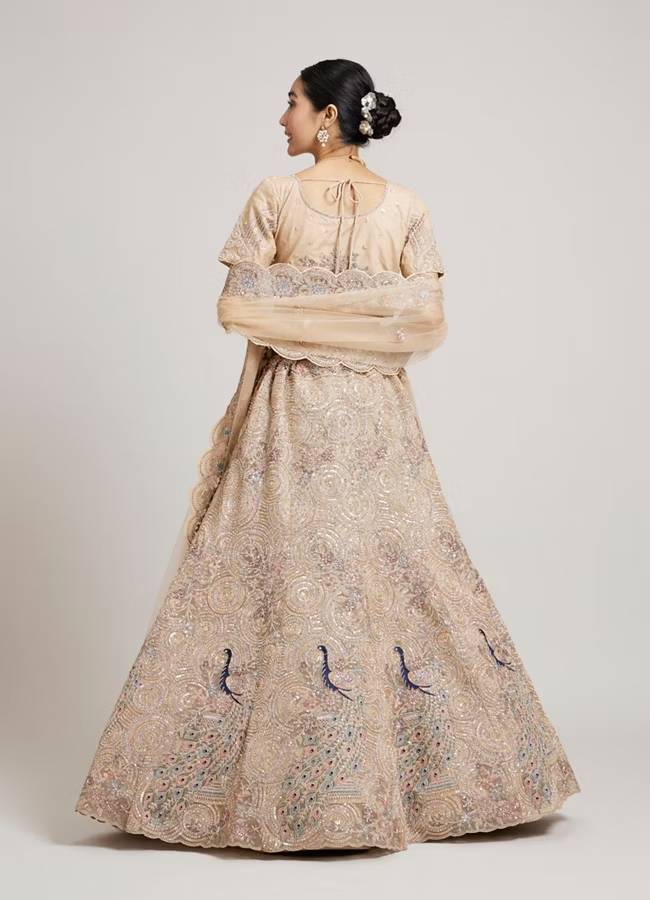 Soft Fawn Sitara Embroidered Lehenga with Peacock Motifs