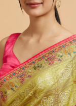 Soft Green Jaal Embroidered Saree with Bagh Motifs and Sequin Work
