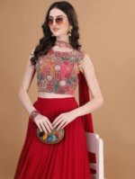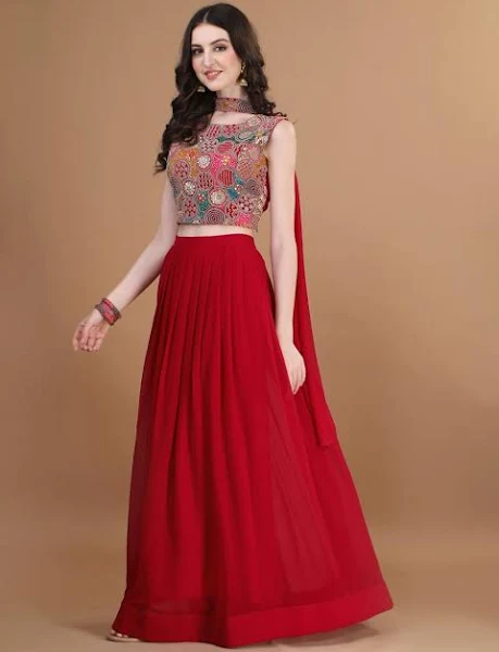TRENDMALLS Women’s Georgette Embroidery work Lehenga Choli with Dupatta | Bridesmaid Wedding Lehenga Choli for women