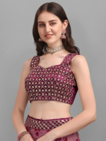 PURVAJA Women’s Jacquard Semi-Stitched Lehenga choli(Lihaaz)