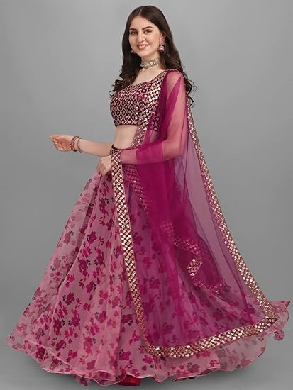 - Package Contents: 1 Lehenga, 1 Blouse, 1 Dupatta || Lehenga Fabric: Organza || Blouse Fabric: Net || Dupatta fabric: Net || Inner Fabric : Satin