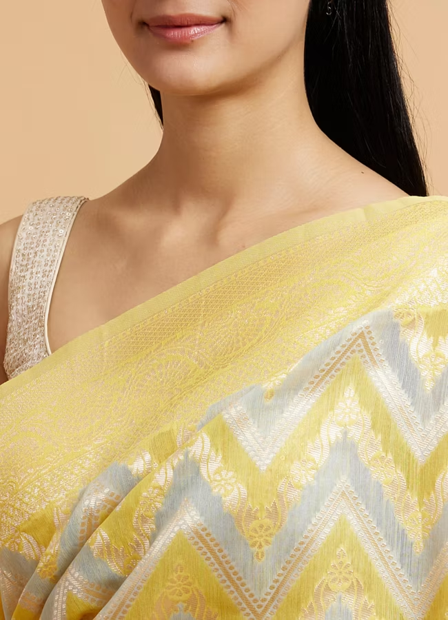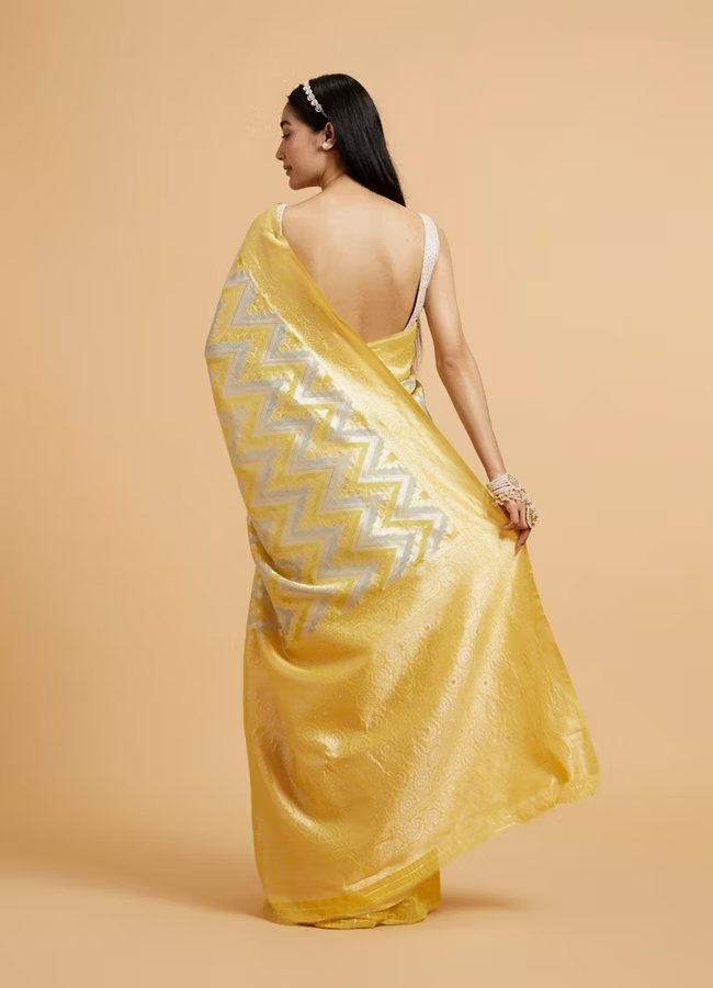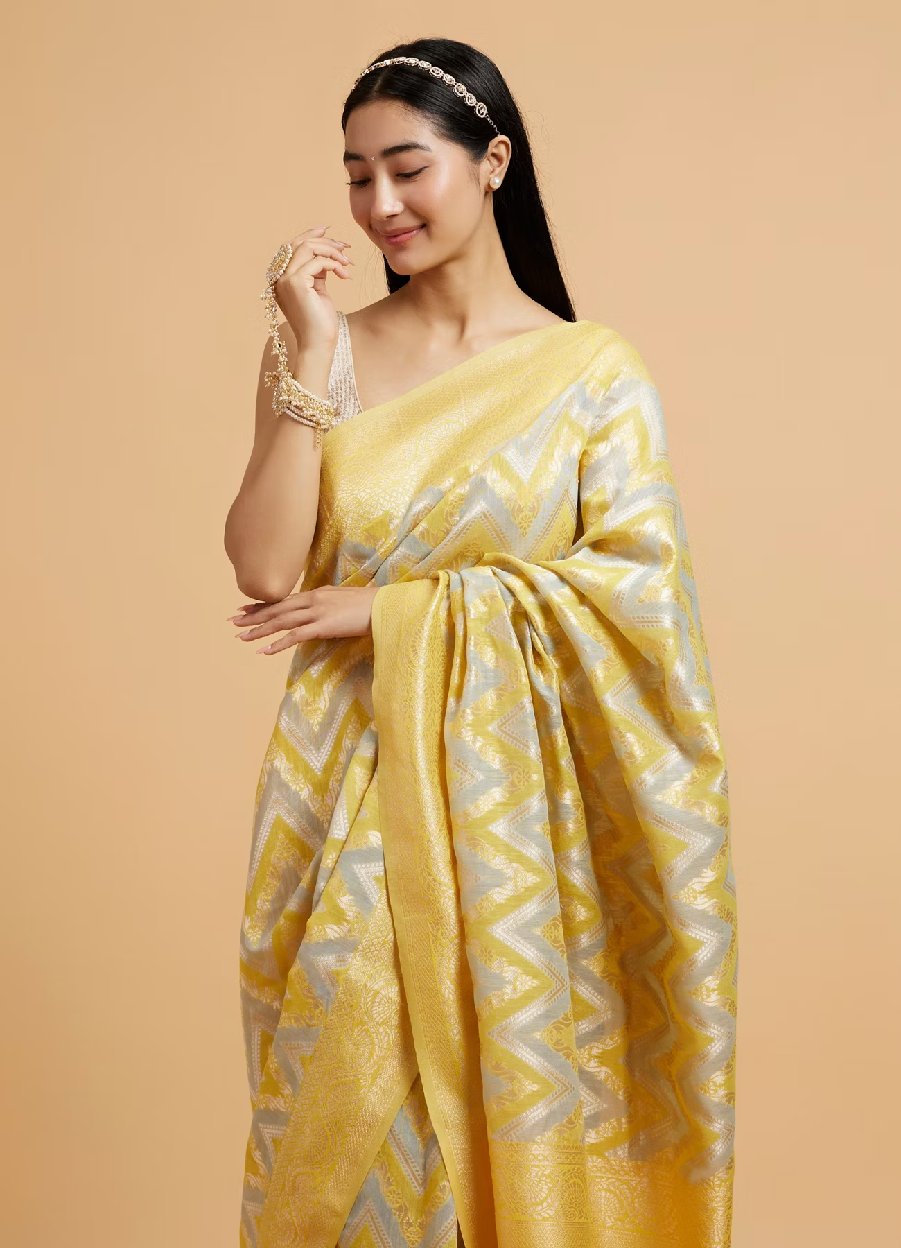 Sunshine Yellow Chevron Patterned Saree with Intricate Borders