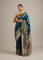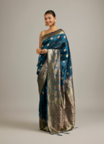 Be the first to review “Teal Blue Buta Patterned Saree with Bel Buti Borders And Paisley Motifs” Cancel reply