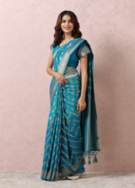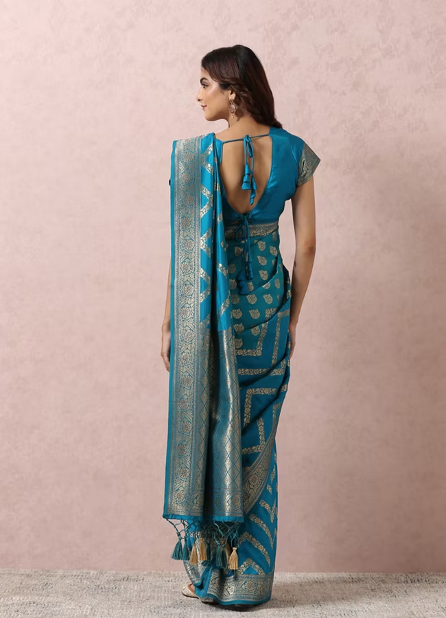 Teal Blue Golden Motif Saree