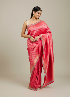 Pink Pre-Stitched Saree Set With Hand Embroidered Blouse