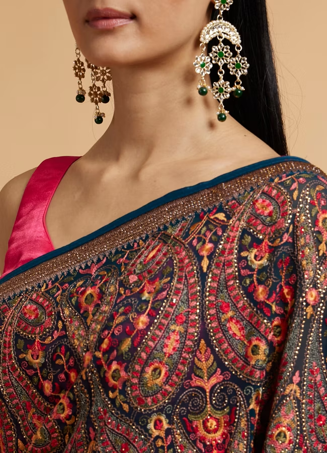Teal Blue Paisley Embroidered Saree