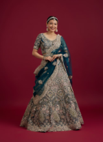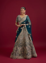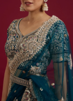 Be the first to review “Teal Blue Sequinned Lehenga with Jaal Pattern And Peacock Motifs” Cancel reply