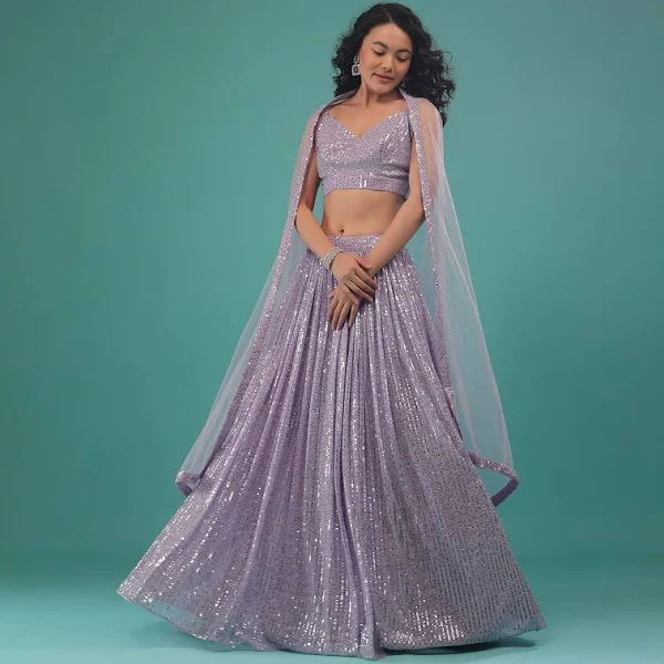 Thistle Purple Lehenga Set In Sequins