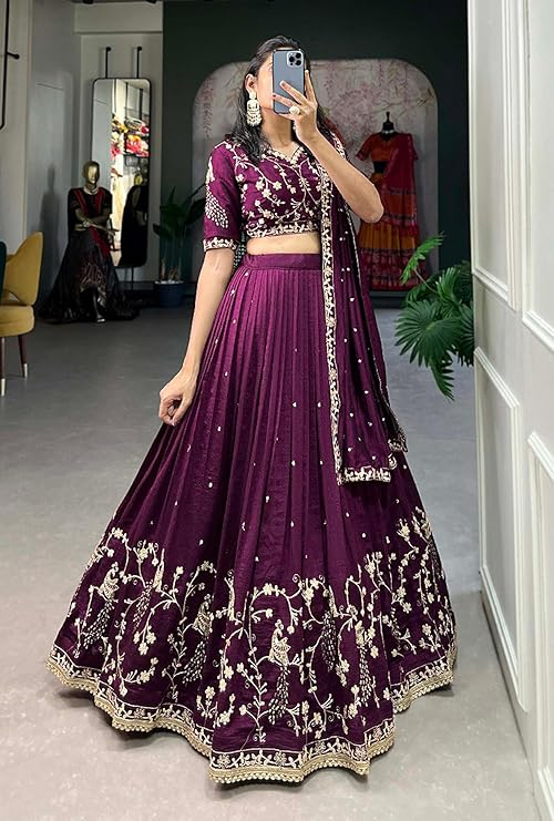 TRENDMALLS Women’s Art Silk Embroidery Sequin work Lehenga Choli with Dupatta-SemiStitch | Stylish Wedding Lehenga Choli for women