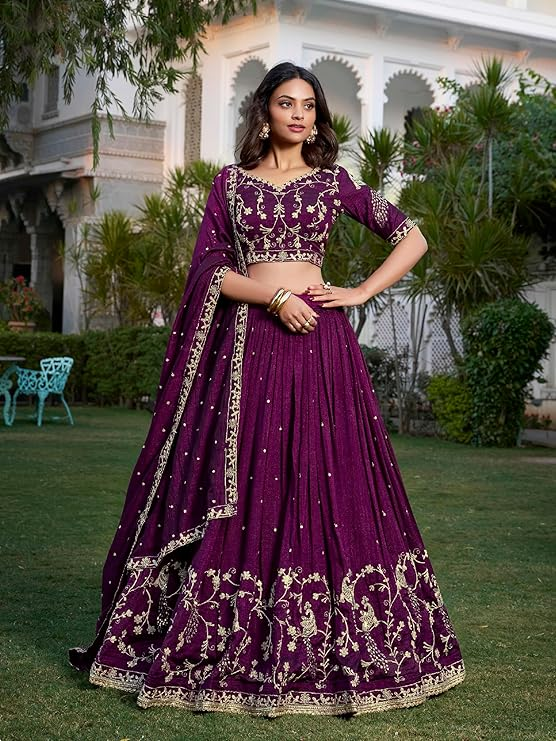 • Color:Lehenga,Choli Blouse,Dupatta: Purple