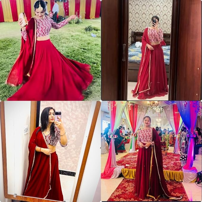 - Work: Embroidery, Sequnce work Choli with Solid Lehnega, Dupatta