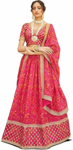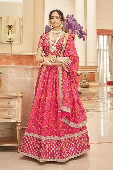 MR CREATION Women’s Wedding Special Floral Lehenga Choli with Foil Print & Gotta Patti Dupatta(PINK)