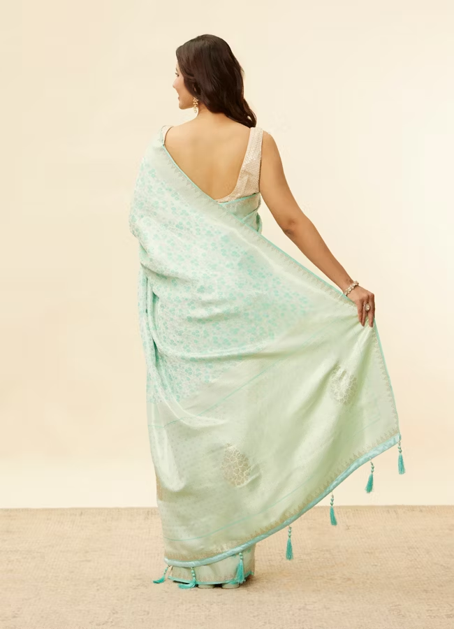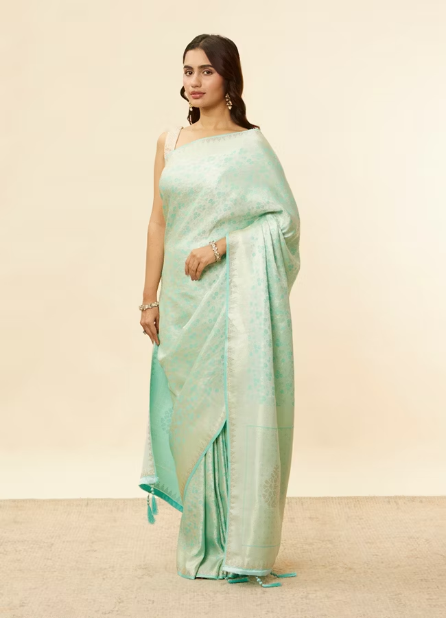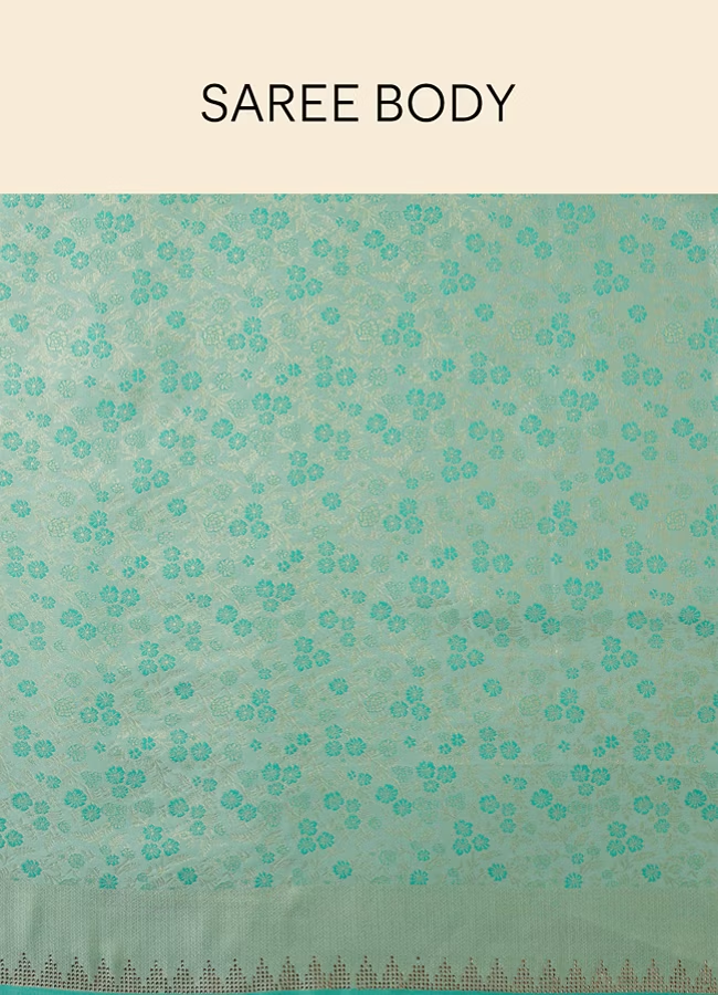Tropical Blue Floral Patterned Zari Work Saree