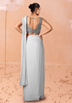 White Pre-Stitched Saree Set With Hand Embroidered Blouse – DSS00435