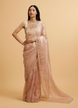 Pink Pre-Stitched Saree Set With Hand Embroidered Blouse