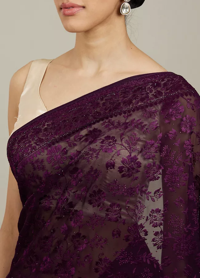 Be the first to review “Wine Bel Buti Patterned Saree with Rhinestones” Cancel reply