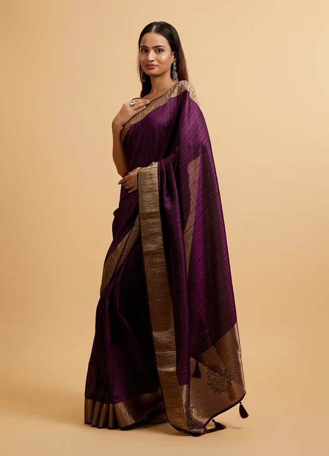 Wine Linear Patterned Rhinestone Saree