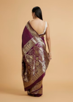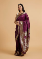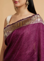 Wine Sequin Embroidered Crepe Satin Silk Saree Set