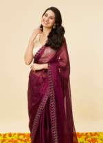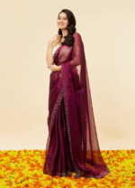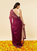 Be the first to review “Wine Red Rhinestone Embellished Saree”