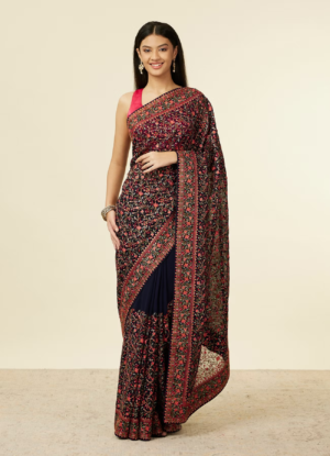Indigo Blue Bel Buti Patterned Saree