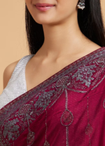 Be the first to review “Wine Red Rhinestone Work Saree with Drop Motifs” Cancel reply
