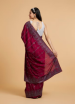 Wine Sequin Embroidered Crepe Satin Silk Saree Set