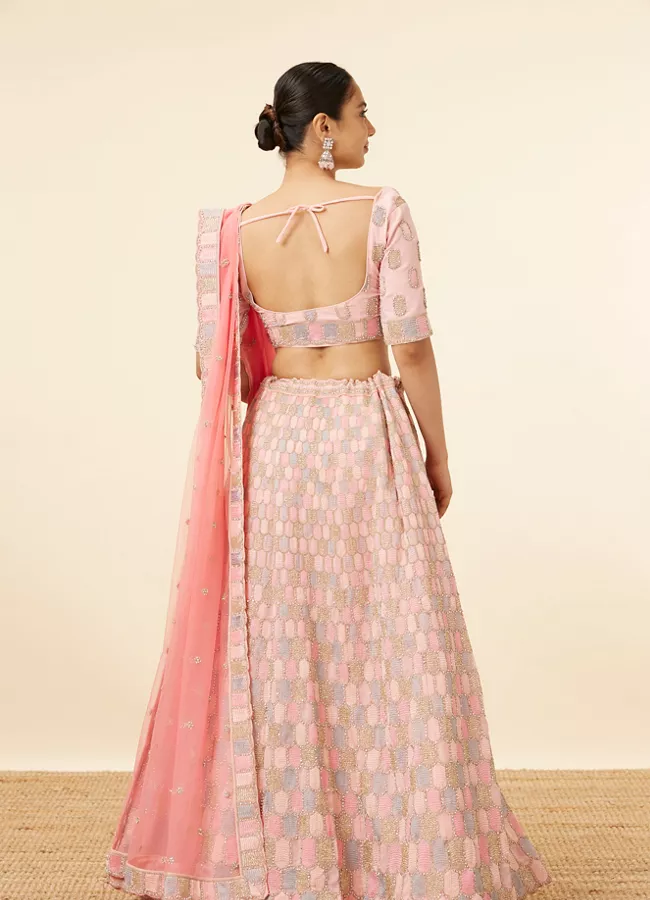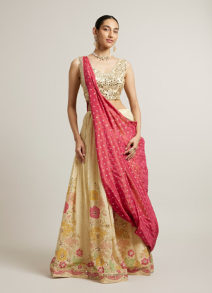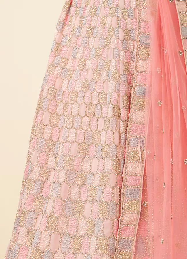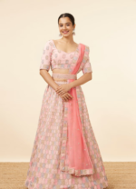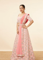 - DescriptionThis Peach-Pink Lehenga makes for an elegant pick for Engagement, Reception, or Sangeet events. The Georgette fabric lehenga features intricate Embroidery, Stone Work, Thread Work, and Zari detailing – adding a regal touch. Comes with Blouse, Dupatta, Latkan, and Belt. Shine at any wedding event with this luxurious attire.
