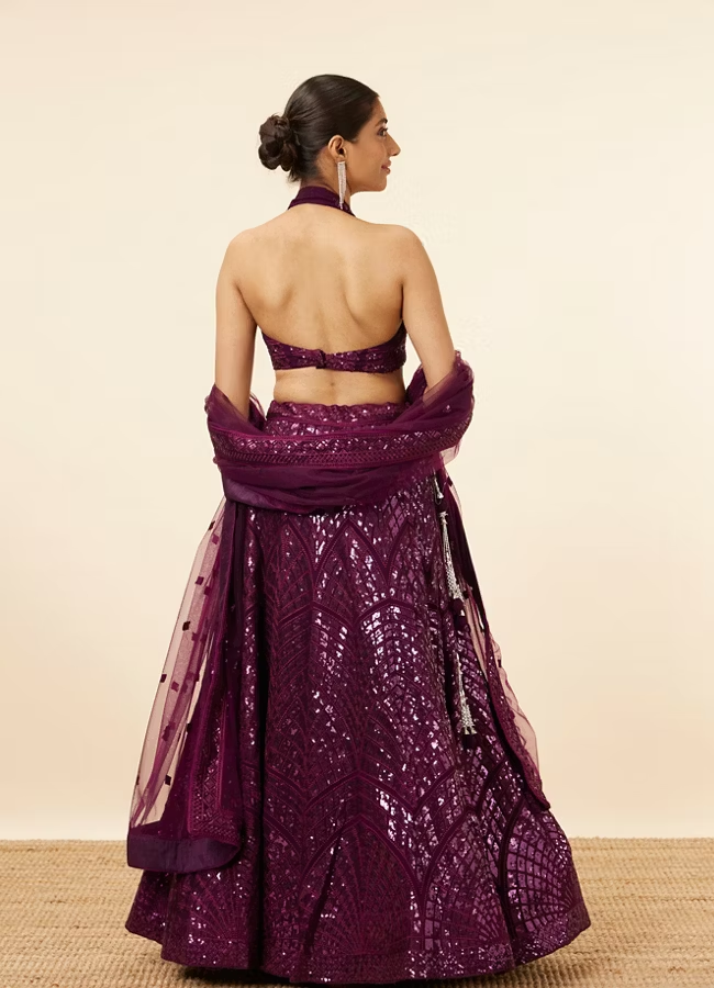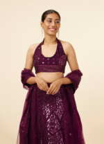 Wine Sequined Cocktail Lehenga
