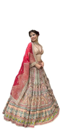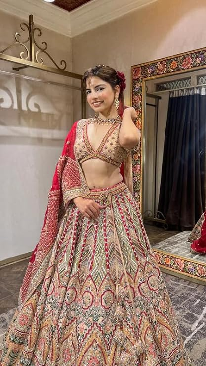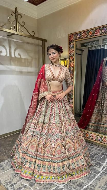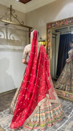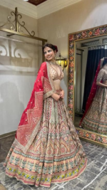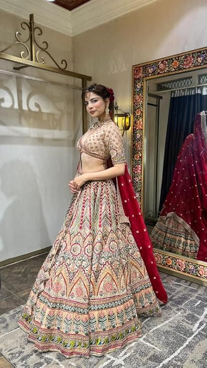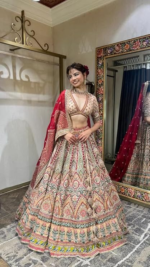 Women’s Beautiful Red & Beige Color Floral Embroidered Bridal Lehenga