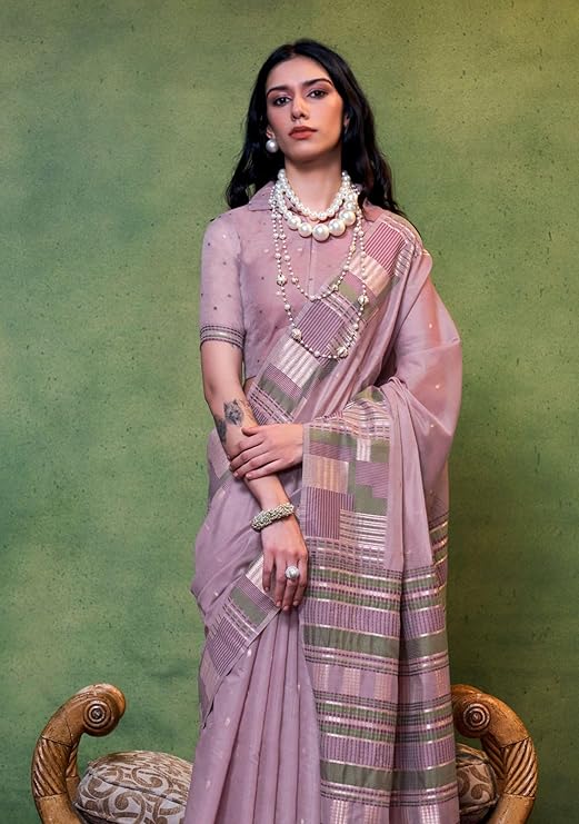 Women’s Kanjivaram Soft Cotton Linen Silk Saree With Unstitched Blouse Piece