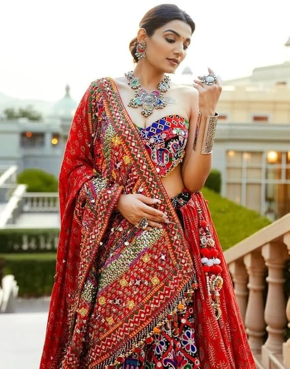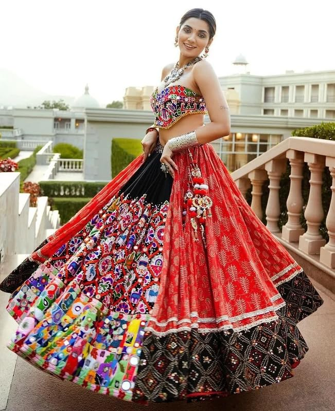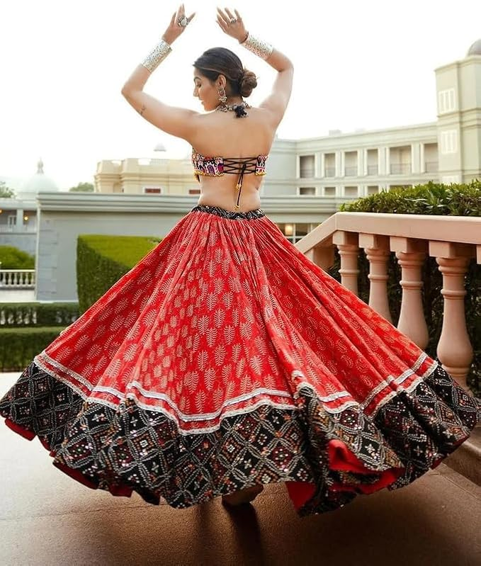 Be the first to review “Women’s Red Cotton Mirror Work Navratri Readymade Lehenga And Choli Set” Cancel reply