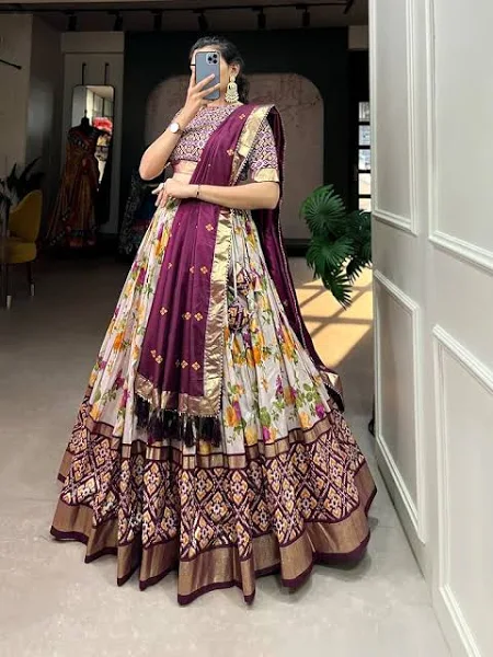 Women,s Tussar Silk With Leheriya And Foil Print Lehenga choli