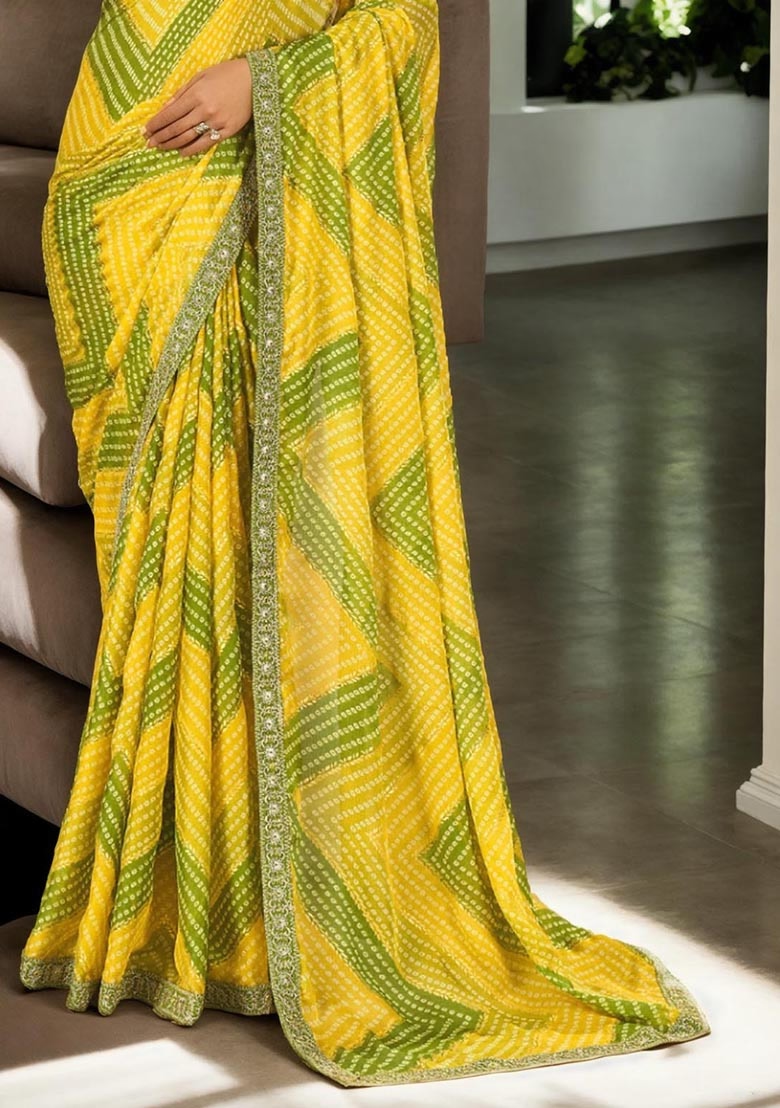 Yellow Bandhani Digital Print Chinon Saree Set – XSR24182
