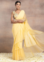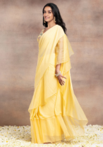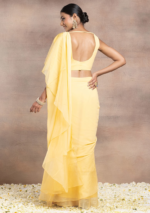 Be the first to review “Yellow Pre-Stitched Saree Set With Floral Thread Hand Embroidered Blouse”