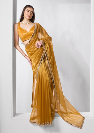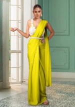 Be the first to review “Yellow Pre-Stitched Saree Set With Hand Embroidered Blouse And Belt”