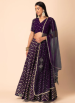 - It comes with a matching purple color soft net fabric dupatta, and it’s finished with a readymade four-sided lace border.