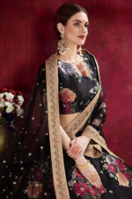 - Measurements: Lehenga Flair : 3.50mtr, waist-43″, height-43″; Blouse Size: 1 Mtr”; Dupatta Length: 2.25 mtr