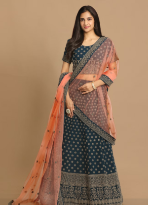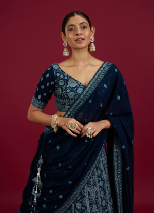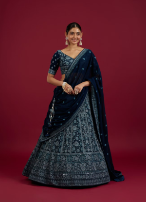 PRODUCT DETAILS Wrap yourself in the timeless elegance of this Blue Lehenga. Crafted from premium georgette, this ensemble includes a