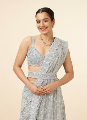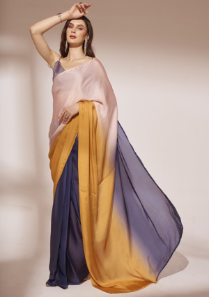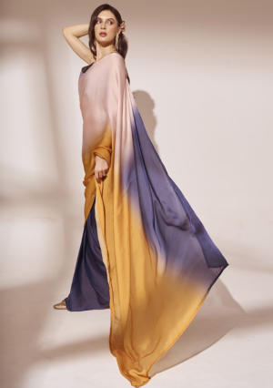 Blue Ombre Color Block Pre-Stitched Saree – XSR01412 Main Color: Ombre Blue Fabric: Satin Package Contents: 2 Work: Color Block